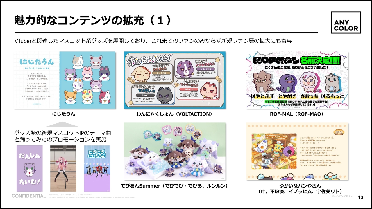 コンテンツについては、直近では「VTuber」をモチーフとした、マスコット系のグッズ展開を積極的に進めています。