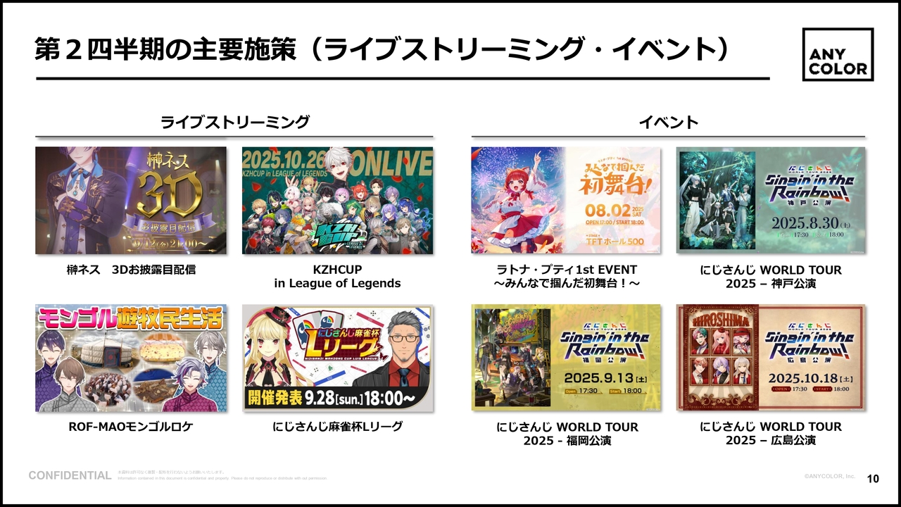 イベント領域では、第2四半期中に「にじさんじ WORLD TOUR 2025 Singin' in the Rainbow!」を3公演実施しました。こちらを中心に想定を上回る反響があったため、見通し対比で上限を上回るかたちで着地しました。