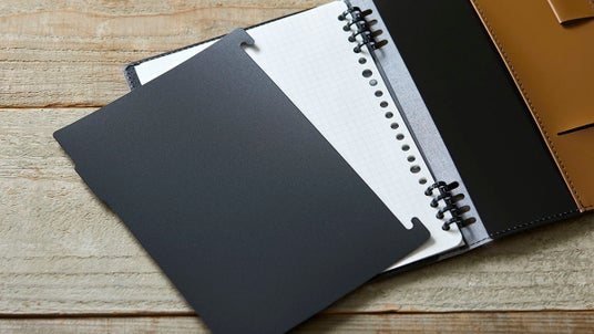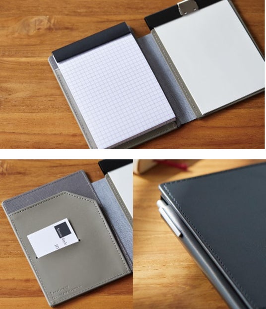 名刺ポケットや、下敷きとして使えるブラインドシート、ペンホルダーなど、ビジネスシーンで役立つ機能を搭載。サイズはA5とB5の2種類です。