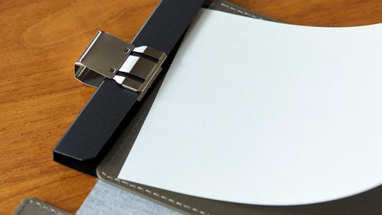 「レザフェスU スライドメモパッド」は、合皮製カバーを備えたメモパッドです。とじ具にスライドクリップを採用し、用紙の入れ替えが簡単にできます。