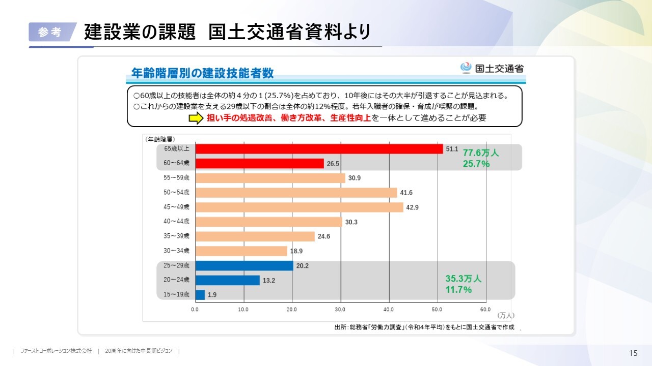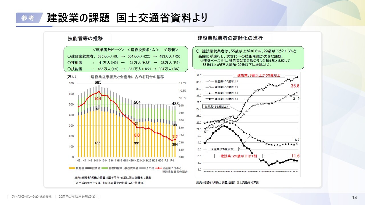 建設業の課題に関するマクロデータです。後ほどご参照ください。