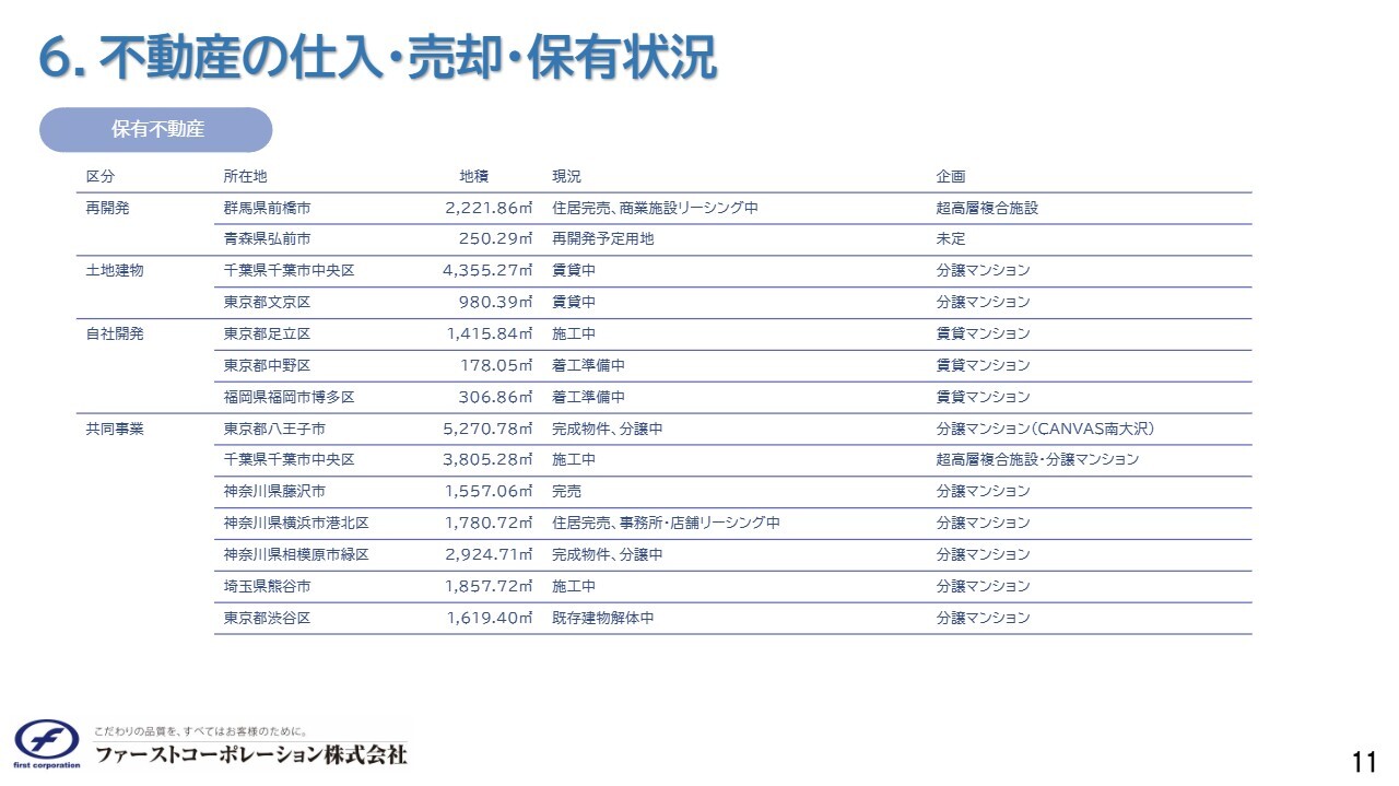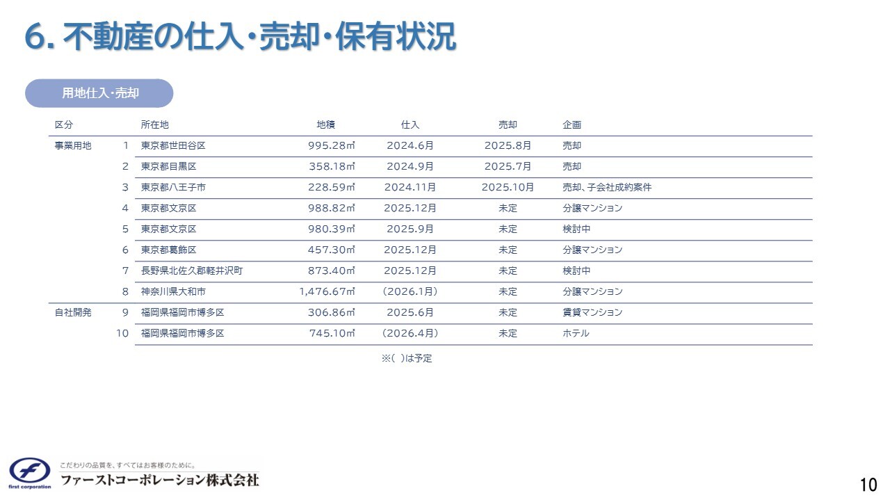 6.不動産の仕入・売却・保有状況