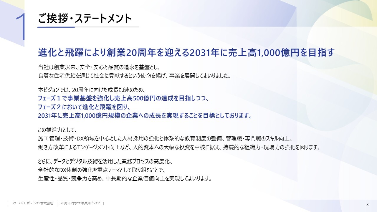 ファーストコーポレーション、2031年に売上高1,000億円を目指す 創業20周年への中長期ビジョン掲げ、進化と飛躍を図る