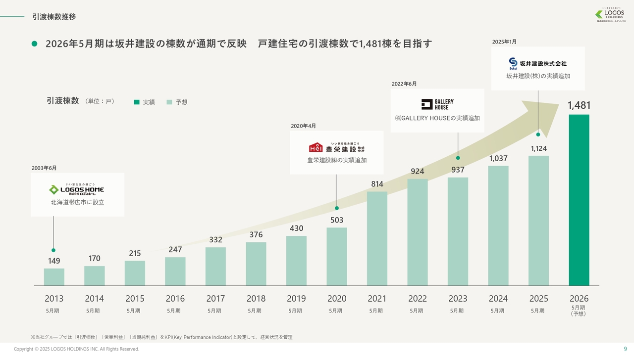 池田:そのような状況の中で、当社は創業以来、右肩上がりで引渡棟数を伸ばしてきました。2024年12月にグループ入りした坂井建設の通期寄与を含め、前年比で30パーセント以上増加しています。今期は過去最高となる1,481棟の引渡しを計画しています。