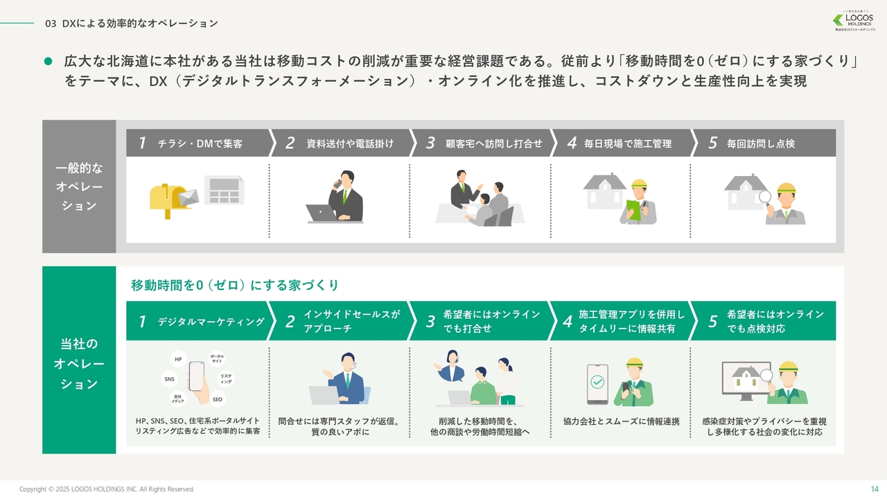 一方で、住宅総合展示営業ではWeb集客に特化するのは難しいと考えています。しかし、当社は東海エリアでも自社展開の展示場を設けているため、北海道と同様のWeb集客型ビジネスモデルを展開できていると考えています。