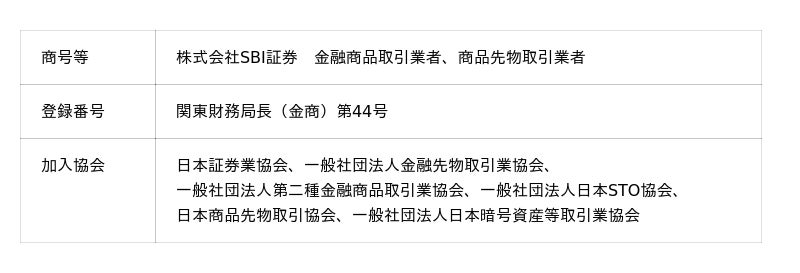 SBI証券で取り扱っている商品等へのご投資には、商品毎に所定の手数料や必要経費等をご負担いただく場合があります。また、各商品等は価格の変動等により損失が生じるおそれがあります(信用取引、先物・オプション取引、商品先物取引、外国為替保証金取引、取引所CFD(くりっく株365)、店頭CFD取引(SBI CFD)では差し入れた保証金・証拠金(元本)を上回る損失が生じるおそれがあります)。各商品等への投資に際してご負担いただく手数料等及びリスクは商品毎に異なりますので、詳細につきましては、SBI証券WEBサイトの当該商品等のページ、金融商品取引法等に係る表示又は契約締結前交付書面等をご確認ください。