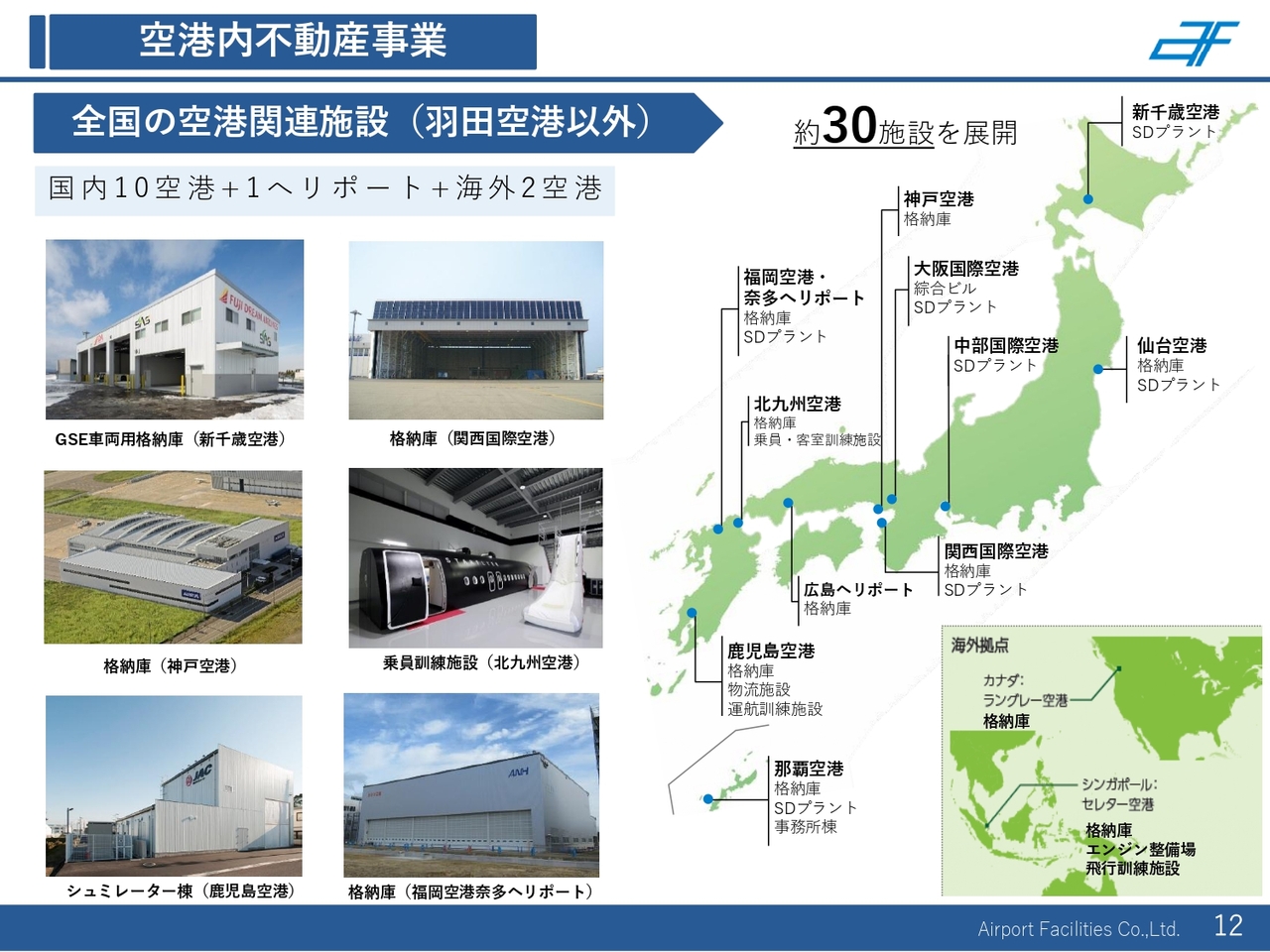 笹岡:羽田空港以外でも全国の空港にまたがって施設を展開しているため、こちらのスライドでご紹介します。