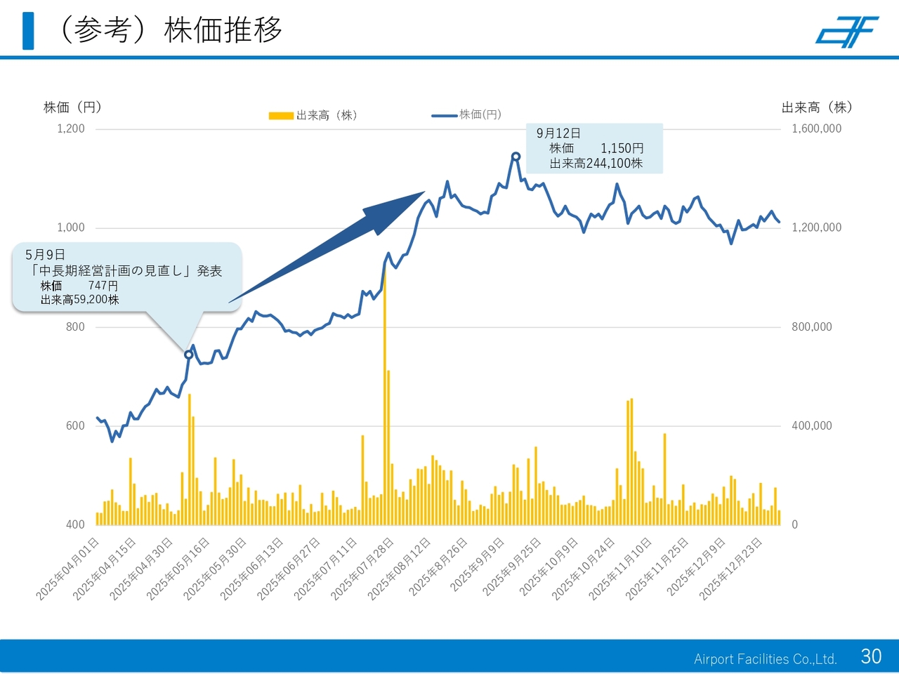 笹岡:こちらのスライドは参考資料です。当社の株価の推移を示しています。昨年5月の中長期経営計画の見直し発表後に株価が上昇し、現在は1,000円台となっています。PBRは0.8倍から0.9倍の範囲にあり、引き続き事業戦略と資本政策の着実な実行に努めていきます。