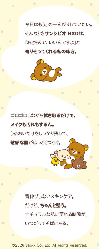 ビオデルマは高いリピート率を背景に、次なるフェーズとして新規顧客層との接点創出を目指していました。この目標に対し、Qoilはこれまでのブランド支援実績を活かし、1本でメイク落とし・洗顔・うるおいケアまで完了する「サンシビオ H2O」の簡便に理想が叶う点と、リラックマが持つ「ごゆるりマイペースでいい」という世界観の親和性に着目。ターゲット層のインサイトに基づいた最適なIP選定から、ブランドの想いを具現化する総合プロモーション企画を立案し、本プロジェクトが実現しました。