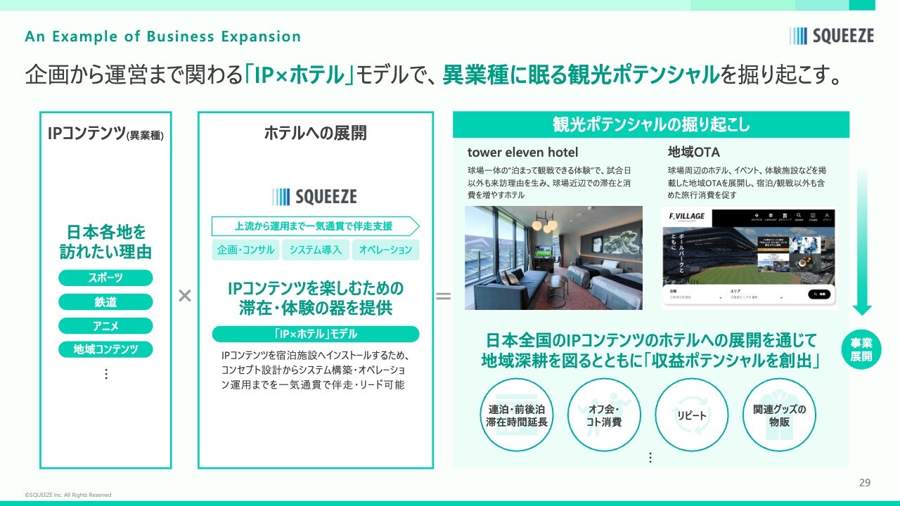 当社が企画段階から関わることで、日本の観光コンテンツやIPコンテンツとホテルが連携し、旅での滞在に付加価値を提供できるとともに、当社が提供できる領域も広がるのではないかと考えています。