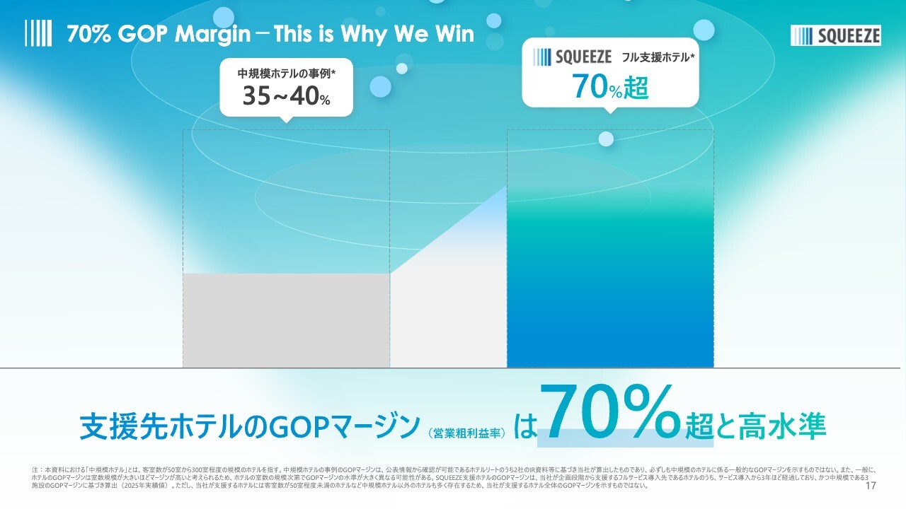 このような時期こそ、ホテルには利益率を高めるために、人件費や各種コストを見直し、経費率を抑えつつオペレーションを筋肉質にすることが求められます。このような状況において、当社はニーズの高いサービスを提供できていると考えています。