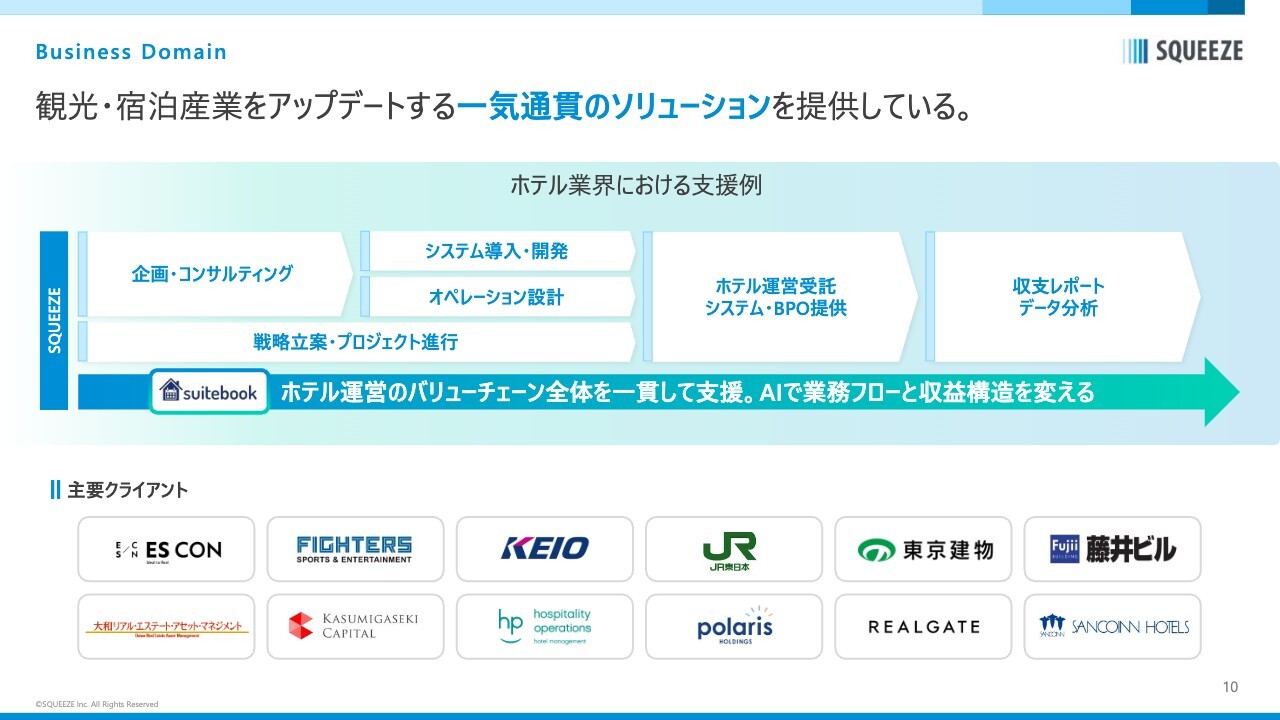 当社は、ホテルのオーナーおよび運営会社に対し、運営または所有するホテルの利益率を向上させるソリューションを提供しています。