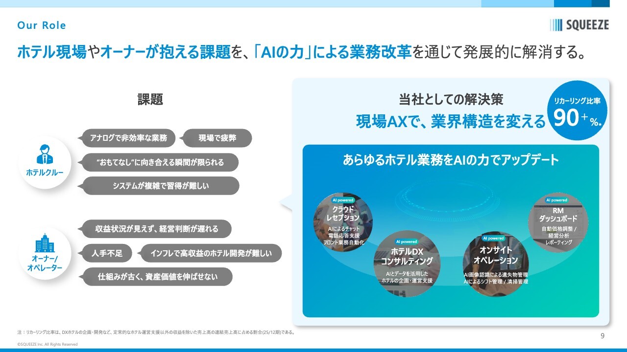 ホテル現場やオーナーが抱える構造的な課題を、テクノロジーとオペレーションで解決することが、我々の企業としてのミッション、ビジョンだと思っています。