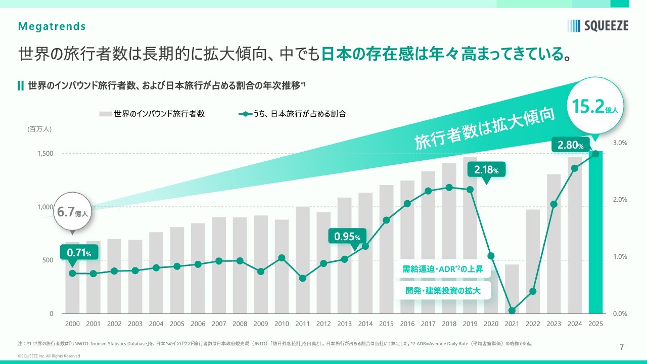 コロナ禍から現在に至るまで、多くのお客さまからのニーズが高まっているという状況です。また、観光業は外部要因の影響が非常に大きい市場だと考えています。例えば、パンデミックや現在の世界情勢などが挙げられます。