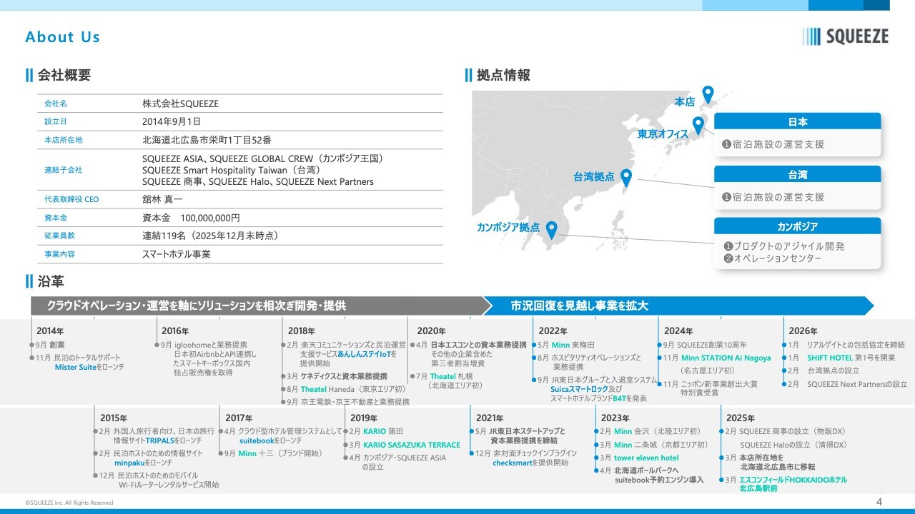 私は2014年にSQUEEZEを創業しました。当初は民泊の運営代行事業からスタートしました。