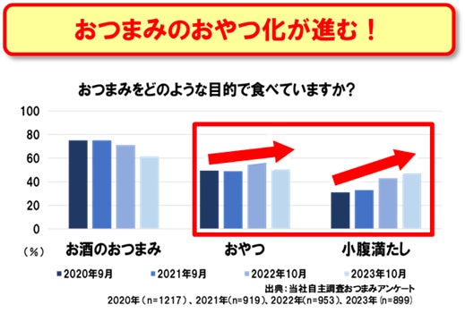 お酒のおつまみのイメージが強い「チータラ」ですが、最近ではおやつとしても利用され、食シーンの幅を広げています。また当社の調査によると、おつまみを食べるきっかけは「親が食べていた」という理由が最多です。そんな「チータラ」をもっとお酒のおつまみ以外でも食べる機会を創出したく、大人から子どもまで多くの方のおやつとして愛されているカルビー「サッポロポテト バーベQあじ」とのコラボレーションを実施する運びとなりました。