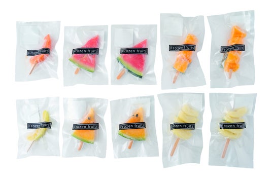 凍ったまま食べられる!みずみずしいフルーツにバーをつけて急速冷凍。