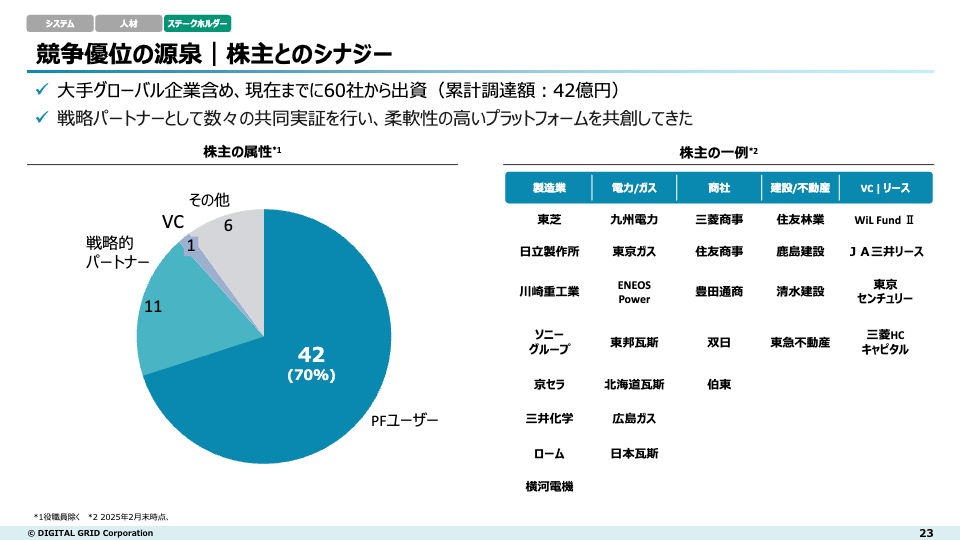 豊田:事業会社さまに関しては、実証の場を提供していただき大変助かりました。残念ながら諸事情により上場株を持てない方々もいるのですが、それで取引が終わってしまうことはないですし、引き続き密に連携を取っていきたいと思っています。