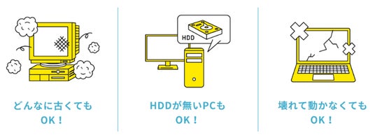 - パソコンのデータ消去ソフトも無料で利用可能、別料金で消去作業+証明書発行も可能。