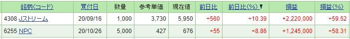 【Jストリーム、NPC】の実際の画像 10月26日【6255】NPC 5000株購入しい場合買付価格:427円現在価格:676円 124万... ...続きを読む