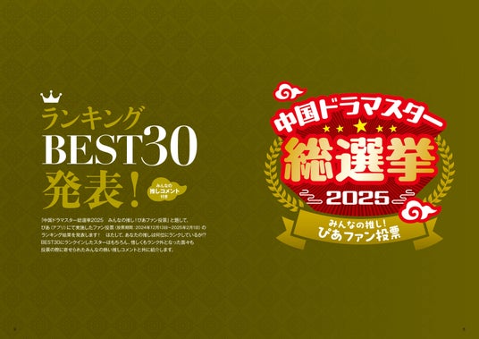 そんなスターたちの魅力をたっぷりとお届けする本誌では、ぴあ(アプリ)で実施のリアル投票企画『中国ドラマスター総選挙2025 みんなの推し!ぴあファン投票』の最終結果を公開します。