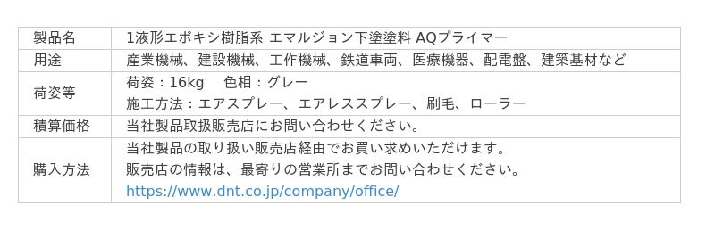 AQシリーズ(AQウレタン・AQプライマー)については下記URLをご参照ください。