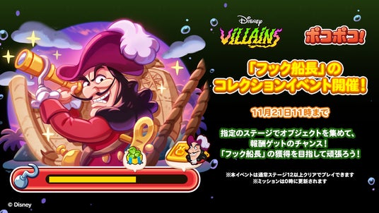 期間中、「フック船長」のコレクションイベントを開催します。クリア条件を達成すると、オリジナル仲間の「フック船長」を仲間にすることができます。