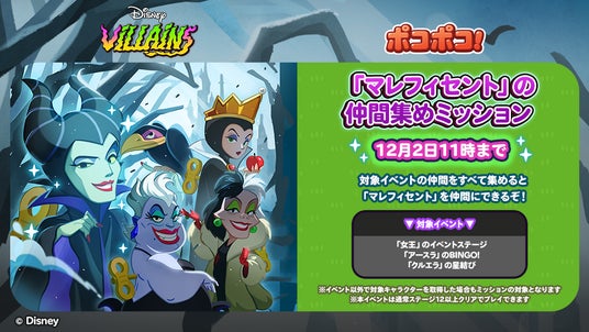 LINEヤフー株式会社は、当社が展開する3マッチパズルゲーム「LINE ポコポコ」(iPhone・Android対応/無料)に、「ディズニーヴィランズ」が登場するイベントやキャンペーンを本日より開始します。