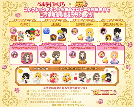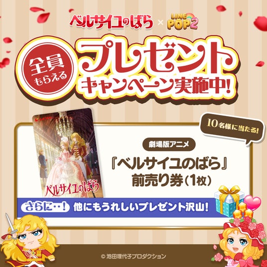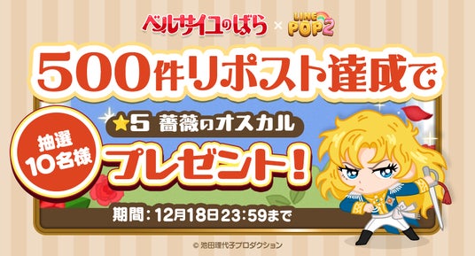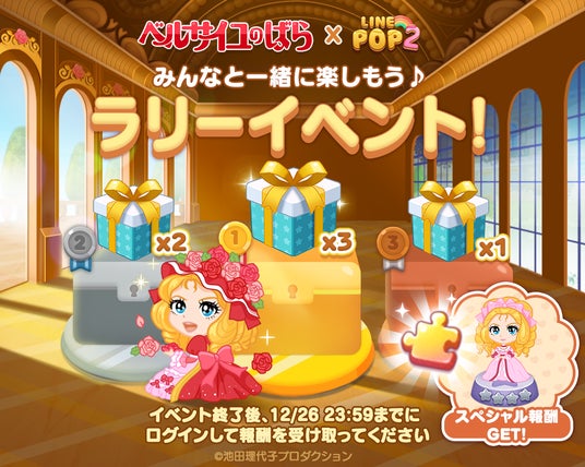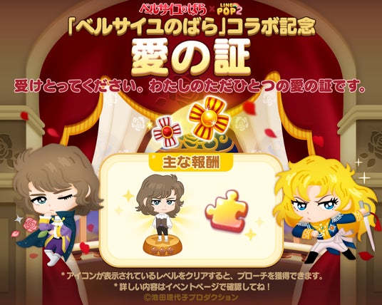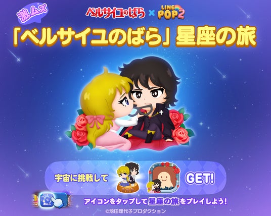 LINEヤフー株式会社は、当社が展開する6角形パズルゲーム「LINE POP2」(iPhone・Android対応/無料)にて、11月29日(金)より『ベルサイユのばら』とのコラボレーションイベントを開催します。