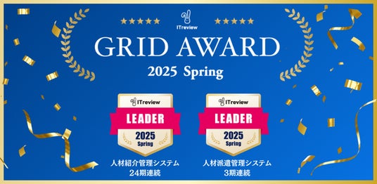【ITreview Grid Award 2025 Spring】の人材紹介管理システム部門・人材派遣管理システム部門で「Leader」賞を受賞