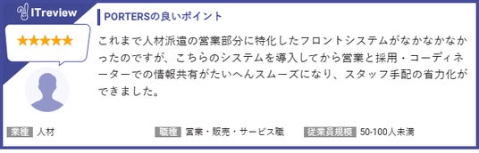 ITreviewに投稿された『PORTERS』利用者の声(一部抜粋)