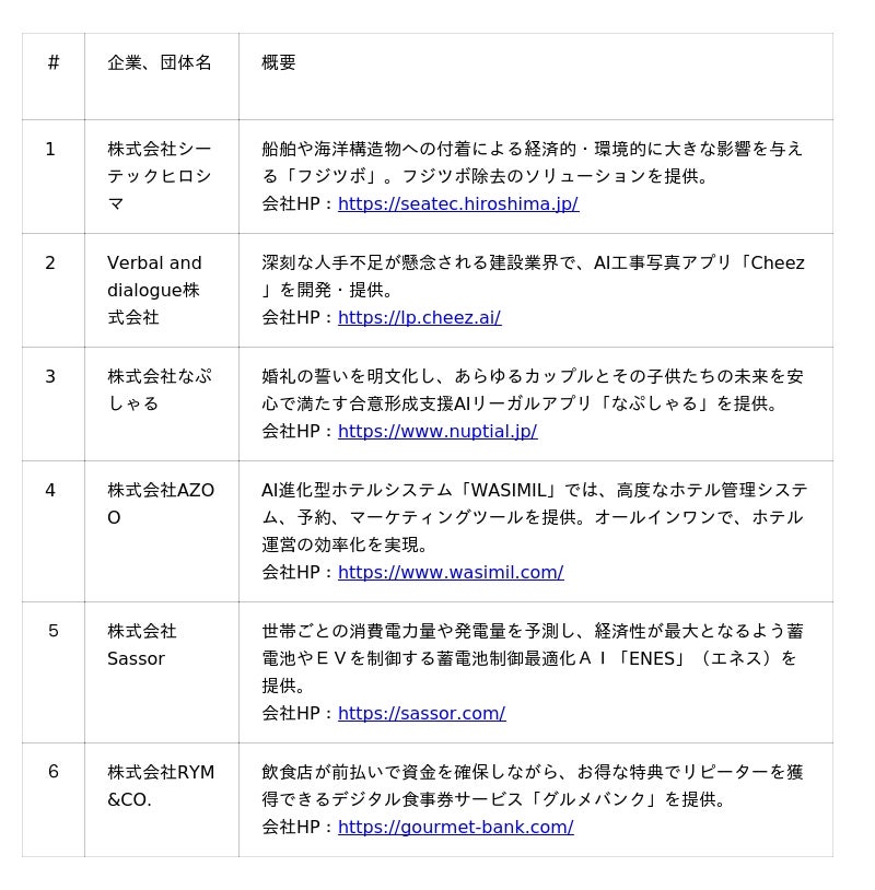 株式会社みらいワークス(本社:東京都港区、代表取締役社長 岡本 祥治、以下「当社」)は、主催するアクセラレーションプログラム(*1)『Booster ACCELERATOR PROGRAM 2025』(*2)(以下、「本プログラム」)の採択企業6社を決定したことをお知らせいたします。