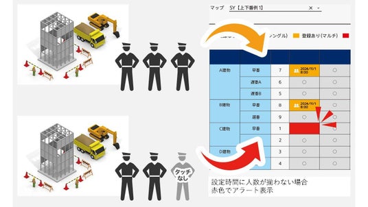 「自動アラート機能」は、出退勤記録だけでなく、警備や介護、清掃箇所の巡回が完了したかどうかといった巡回管理にも活用でき、顧客からの評価につながっています。