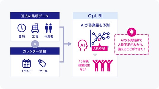 日時・工程・作業者別などの過去の作業実績を可視化し、イベント情報を加味した時系列分析で未来の作業量を予測します。これにより、繁忙期・閑散期に応じた事前の人員確保や当日の効率的な配置が可能です。