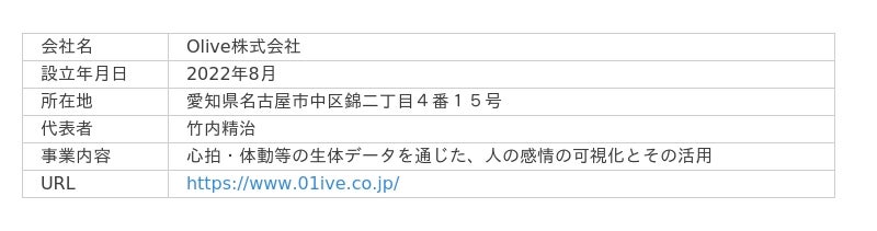 キヤノンマーケティングジャパン株式会社(代表取締役社長:足立正親、以下キヤノンMJ)は、コーポレートベンチャーキャピタル(CVC)ファンド「Canon Marketing Japan MIRAI Fund」を通じて、心拍や体動など人が意識的にコントロールできない生体データを基に、感情の可視化とその活用に取り組むOlive株式会社(本社:愛知県名古屋市、代表取締役CEO:竹内精治、以下Olive)に出資しました。