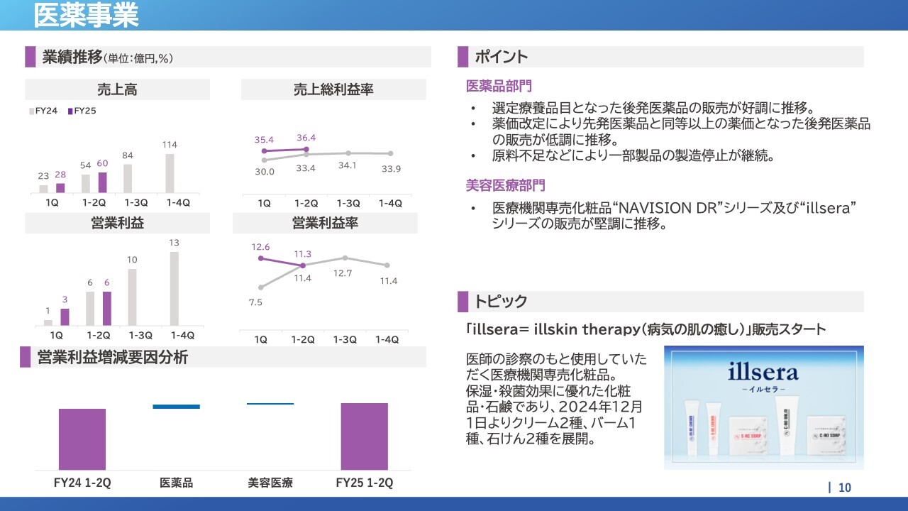 美容医療部門では、医療機関専売化粧品「NAVISION DR(ナビジョンDR)」シリーズおよび「illsera(イルセラ)」シリーズの販売が堅調に推移しました。