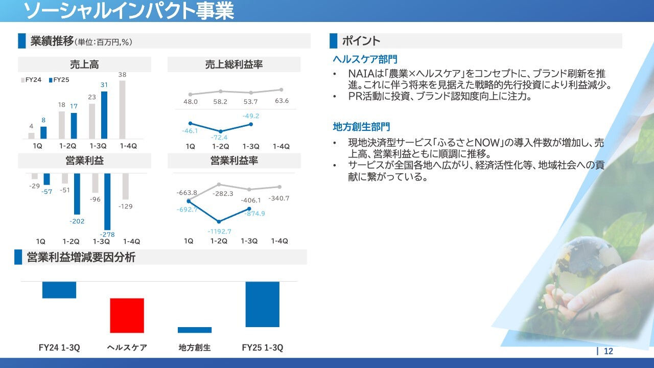 ソーシャルインパクト事業は増収減益となりました。