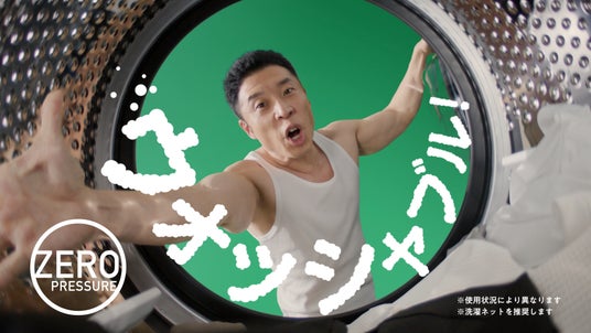 CM内では、三浦さんの「暑くなってきたねー」の投げかけに、きんに君さんと石川さんが「はい」と回答するところからスタートします。石川さんが軽さとストレッチ性を伝えるために、現役時代を思い出すかのような華麗なスマッシュの動きでICカードを改札機へかざします。きんに君さんは、自身が着用しているスーツを脱ぎ、鍛え上げられた肉体美を披露しながら洗濯機にスーツを入れるなど、お二人のキャラクターを生かしゼロプレッシャースーツの機能性をわかりやすく表現しています。『洋服の青山』のCMでは、お馴染みになってきている3人。息ピッタリとテンポのよい掛け合いは、もはや芸術の領域です。
