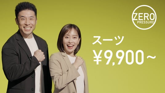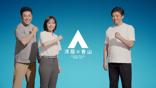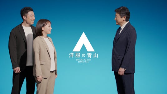 今回のCMでは、ゼロプレッシャーシリーズのスーツとシャツをタイドアップで着こなす三浦さんと、同シリーズのスーツとTシャツを合わせてリラックス感のあるビジカジスタイルのきんに君さんと石川さんが登場。『洋服の青山』で、お馴染みの3人が夏をキーワードに、ゼロプレッシャースーツの特徴でもある軽さやストレッチ性、ウォッシャブルなど、コストパフォーマンスの高さを最大限に訴求する内容となっています。