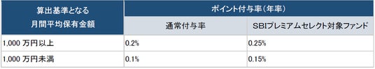 1.「SBIプレミアムセレクト」は保有期間中の残高に応じて貯まるポイントを最大50%増量