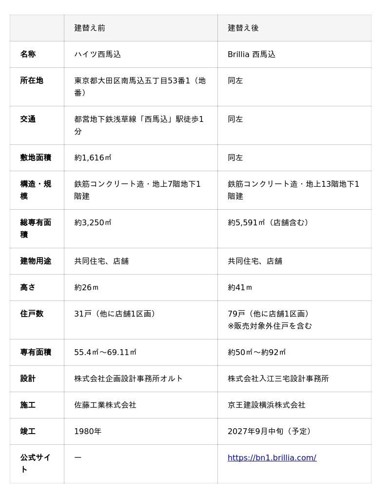 なお、本事業は大田区が初めて認可権者となるマンション建替え法に基づく建替え事業であり、容積緩和も同法に基づき許可(約262%→約355%)を受けています。