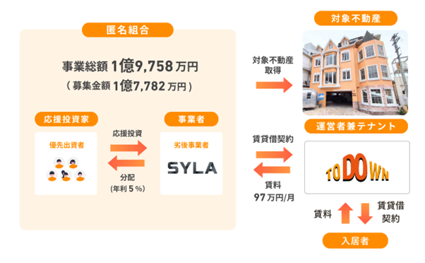 “応援を新しいカタチで”をコンセプトに、一口1万円から、社会貢献や地域創生、誰かの夢や挑戦に繋がる不動産に応援投資ができる“応援型不動産クラウドファンディングプラットフォーム”です。