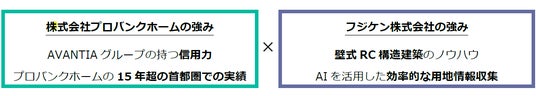 この度、同事業の拡大に向け、グループ会社であるプロバンクホームとフジケンとの間で業務提携を締結することで、高い利益率と短い回転期間で開発を進められる「壁式RC(鉄筋コンクリート)構造」に特化した収益物件の開発を進め、さらなる事業拡大を進めてまいります。