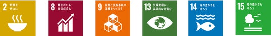 今回ご案内の取り組みは、SDGsの17のゴールのうち、特に2番、8番、9番、13番、14番、15番に貢献するものと考えています。