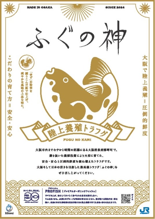 JR西日本の認証ブランド「PROFISH(プロフィッシュ) プレミアムオーガニックフィッシュ」の新商品 大阪産トラフグ「ふぐの神」を12月から販売開始!