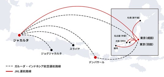 【JAL/ガルーダ・インドネシア航空の現行コードシェア路線】