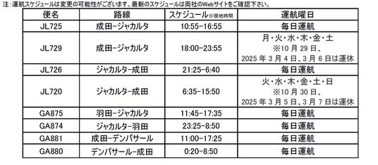 日本航空株式会社(本社:東京都品川区、代表取締役社長:鳥取 三津子、以下「JAL」)とガルーダ・インドネシア航空(本社:インドネシア ジャカルタ、代表取締役社長:Irfan Setiaputra)は、2025年4月から日本=インドネシア路線における共同事業を開始することを目指すことで合意し、本日両社間で契約を締結しました。