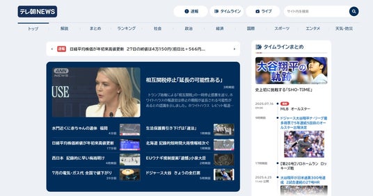 政治・経済・社会・国際から、スポーツ・エンタメまで、最新ニュースをリアルタイムで伝えて好評を博している、テレビ朝日のニュースサイト『テレ朝NEWS』。2025年7月1日(火)、全面リニューアルをはたしました。
