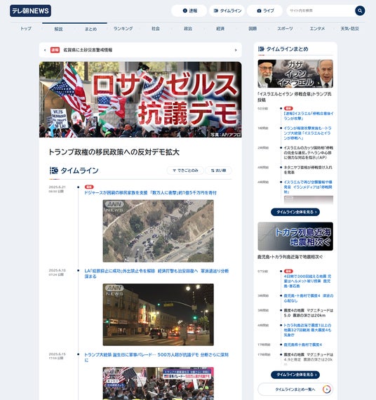 世の中の出来事を 「●REC 記録しつづける」 テレビ朝日のニュースサイト「テレ朝NEWS」 が全面リニューアル 新タイムラインやマッピング機能でニュースをより多角的に!