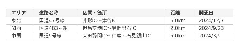 ~高速道路・高規格幹線道路の新規開通区間を反映~